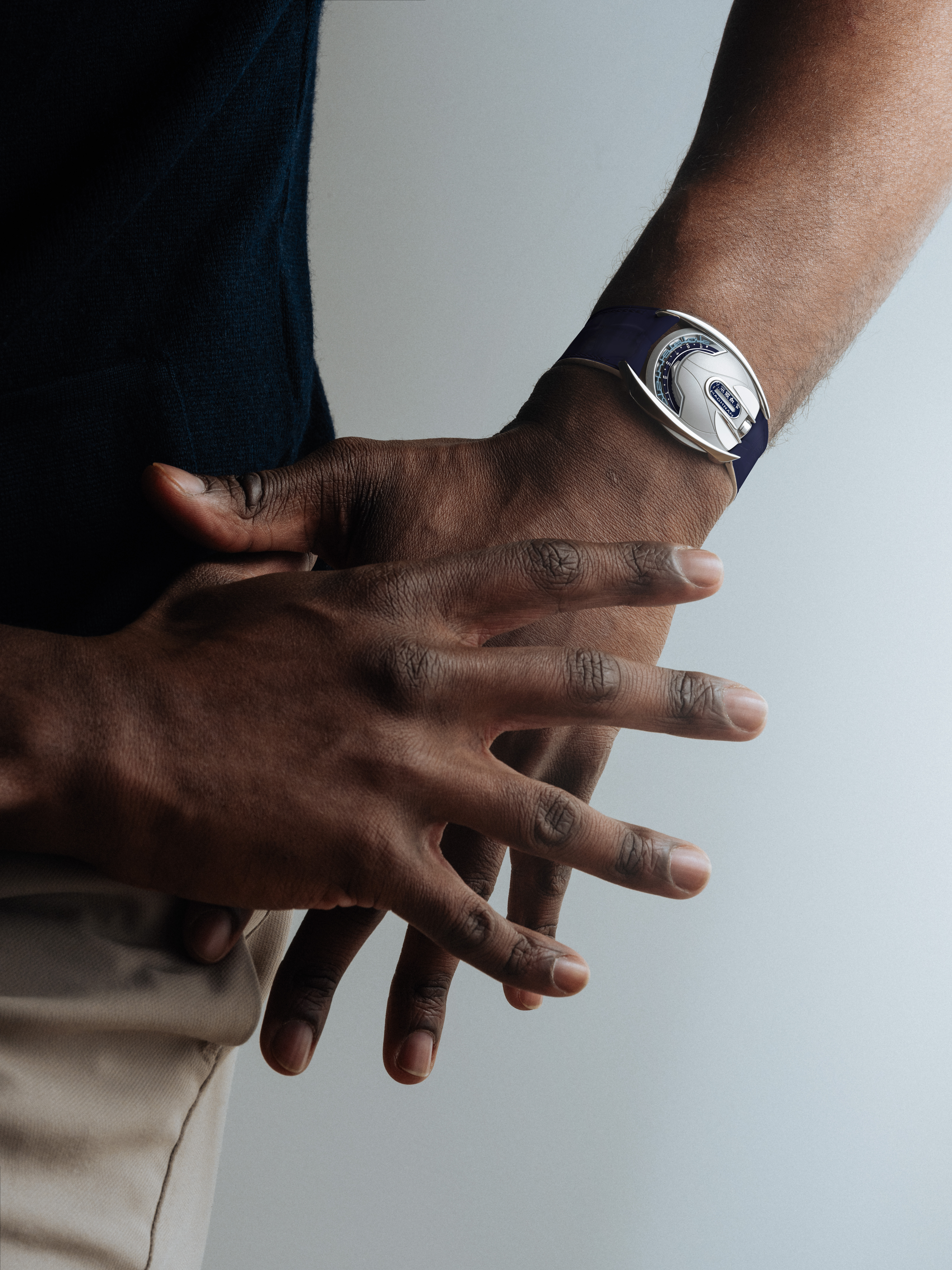 Mohareb’s modular architecture allows it to transform its identity on the wrist. Interchangeable elements—Blades, Halo, and Wings—reshape its silhouette, echoing the adaptability of the warrior it represents. Despite its bold and sculptural presence, the watch remains lightweight and ergonomic, delivering both comfort and striking visual impact.